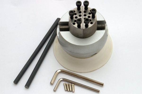 Diese Gravierkugel liefern wir mit passendem Ständer und einem Satz Spannwerkzeugen.
