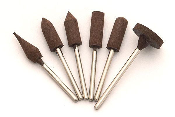 Sechs Polierspitzen mit 800er-Körnung in den gebräuchlisten Formen (siehe Bild)